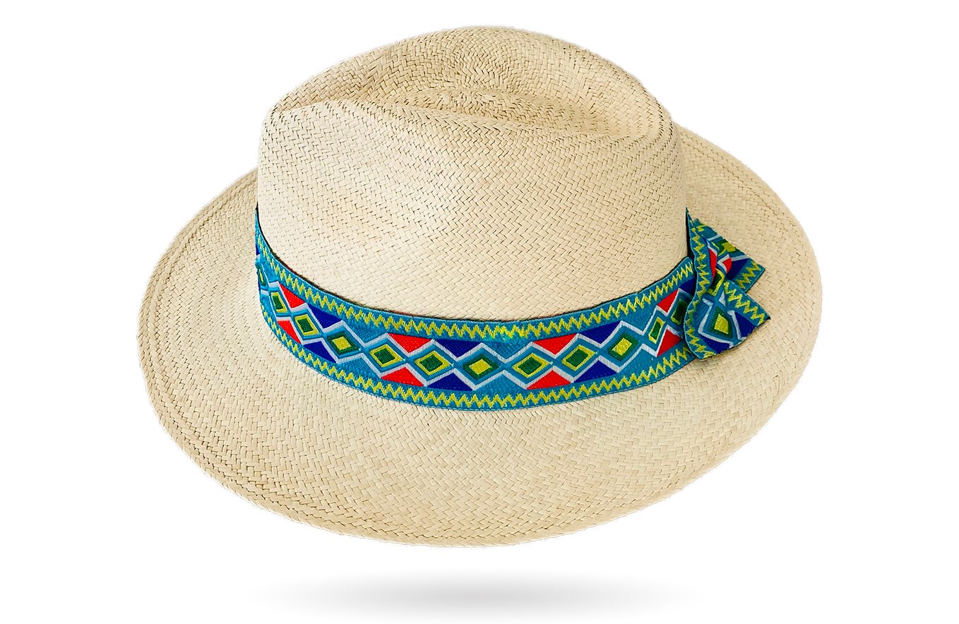 This gorgeous Panama Hat with vibrant multicolour geometric band, it is a must have hat for every fashionista girl wardrobe. 100% natural fine ’Toquilla' straw, treated with natural processmaking it easy to care