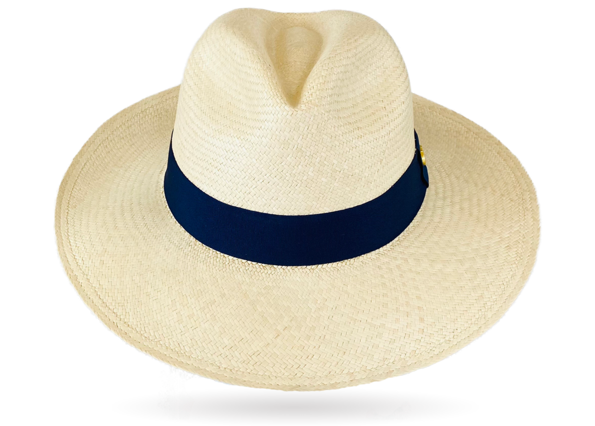 Hatband: Blue Navy grosgrain ribbon with our iconic golden pin fixed on the side that adds distinction to any summer outfit