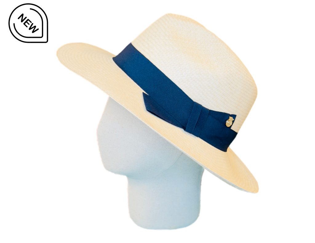 Hatband: Blue navy grosgrain ribbon with our iconic pin fixed on the side that adds distinction to any summer outfit